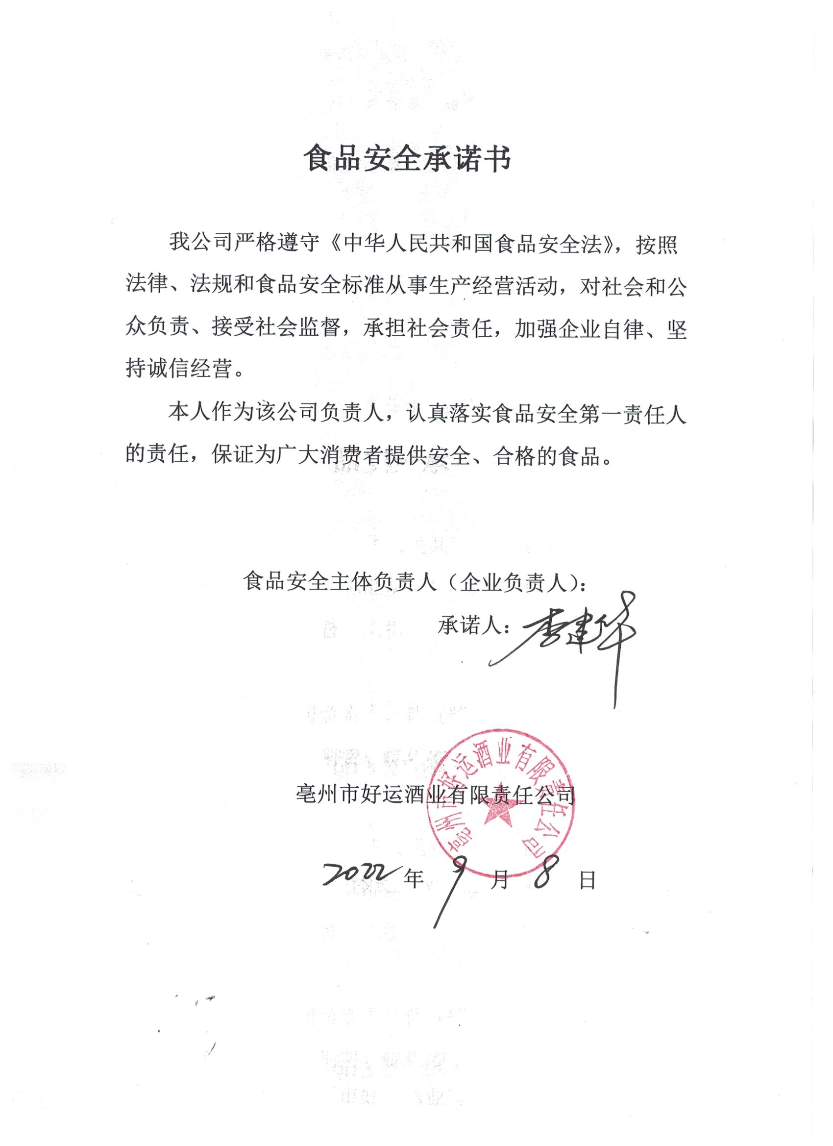 食品安全承諾書